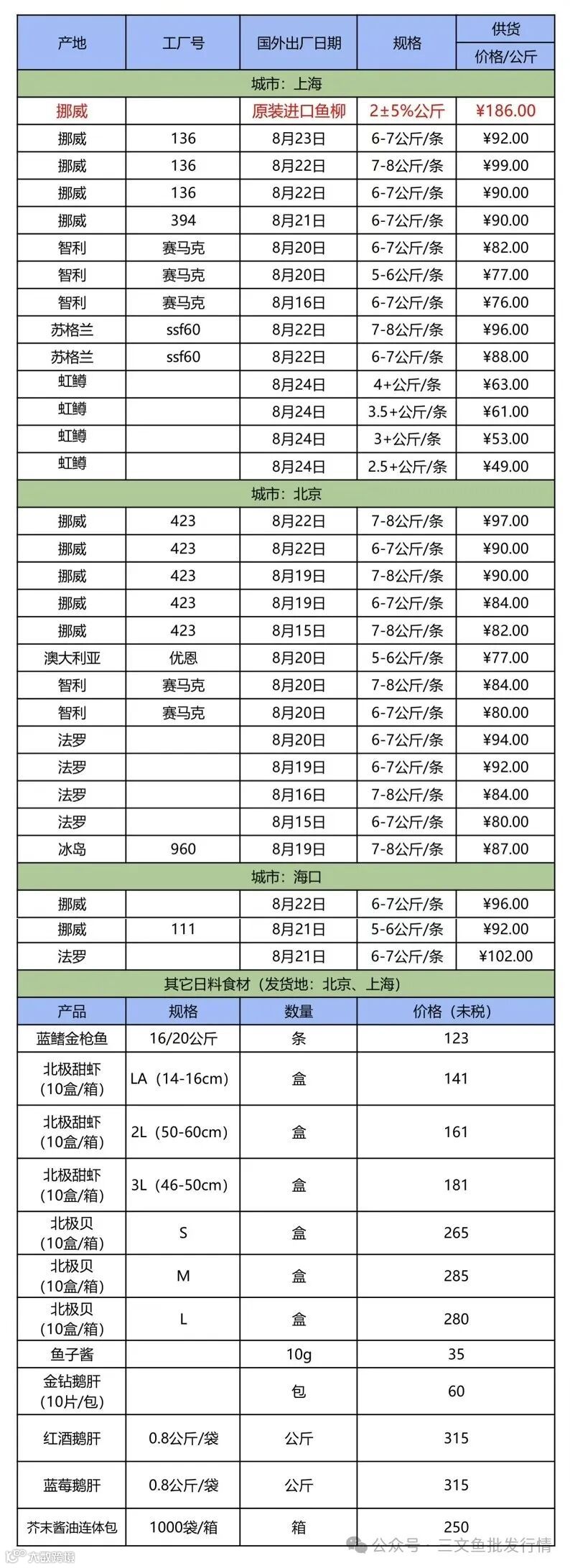7、欢迎关注[三文鱼批发行情],每天更新当天市场价格,及时分享市场各大重要资讯。