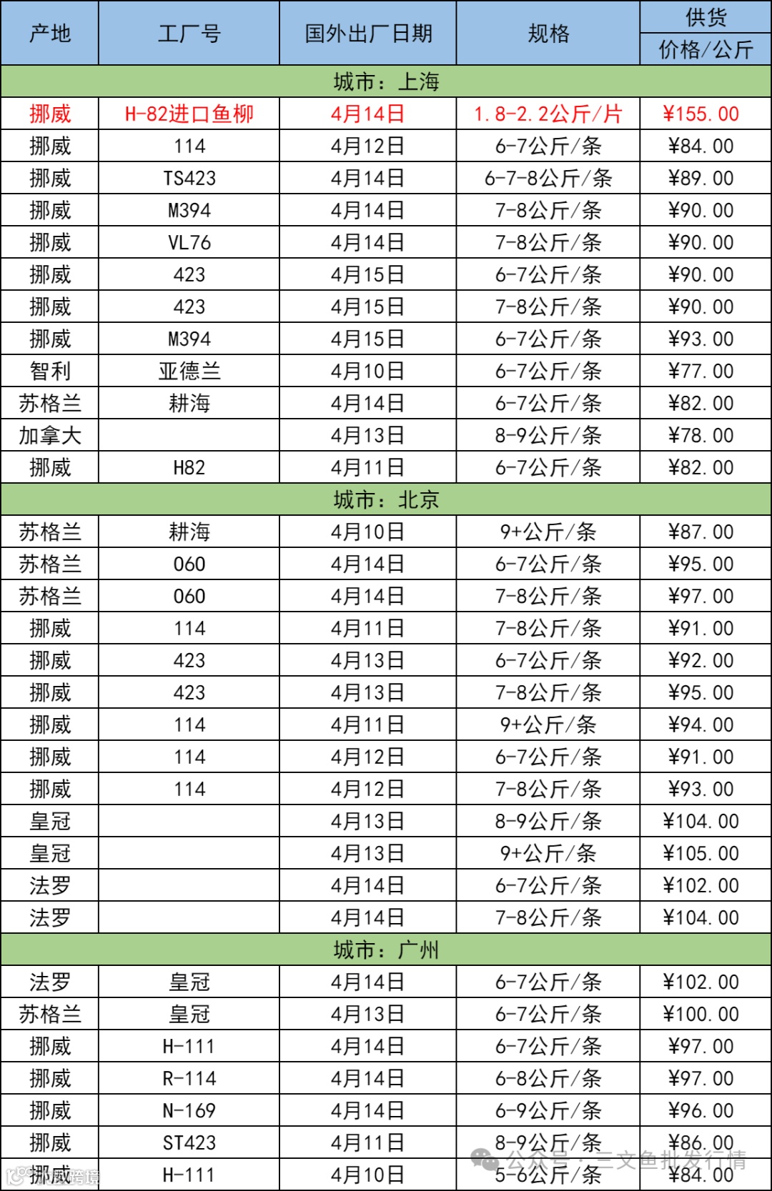 4月18日三文鱼批发行情(上海|北京|广州)
