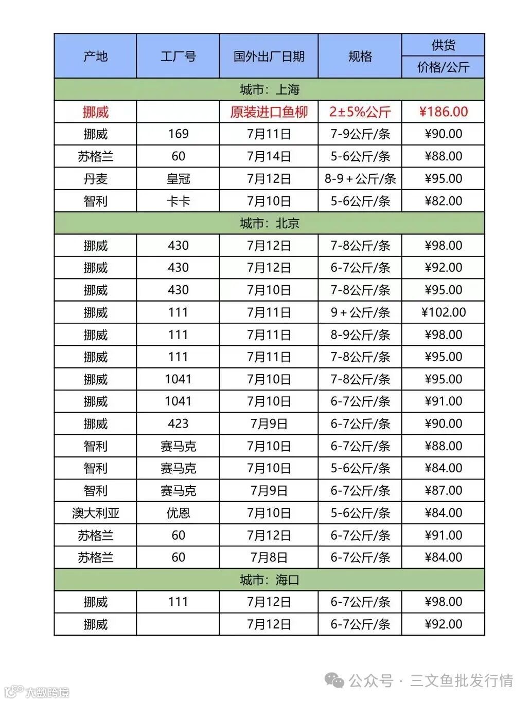6、欢迎关注[三文鱼批发行情],每天更新当天市场价格,及时分享市场各大重要资讯。