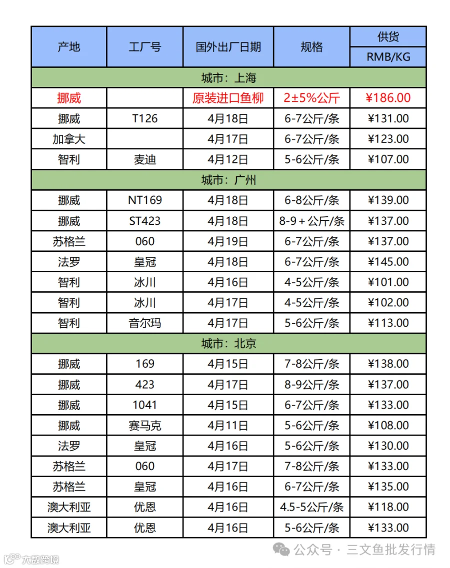 4月22日三文鱼批发行情(上海|广州|北京) 三文鱼批发行情
