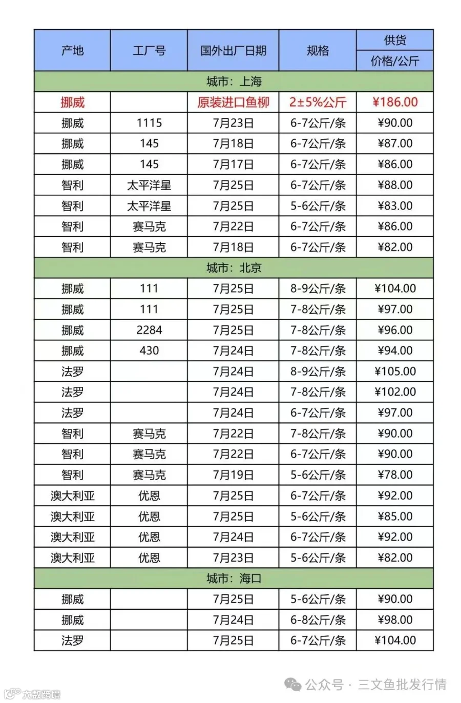 6、欢迎关注[三文鱼批发行情],每天更新当天市场价格,及时分享市场各大重要资讯。