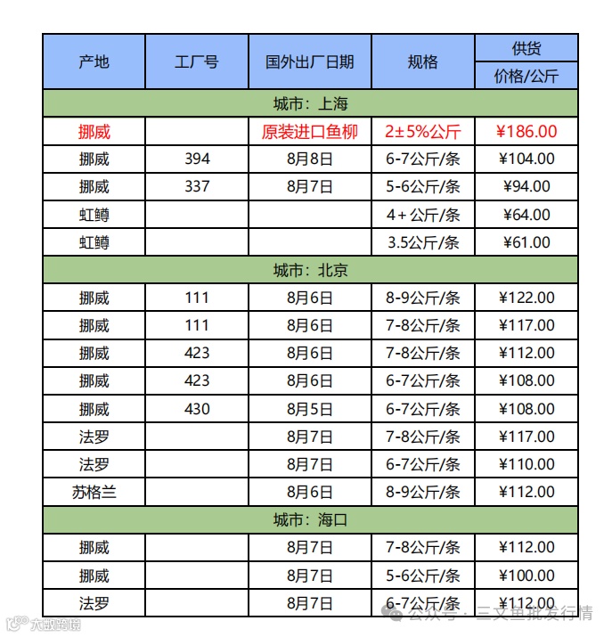 6、欢迎关注[三文鱼批发行情],每天更新当天市场价格,及时分享市场各大重要资讯。
