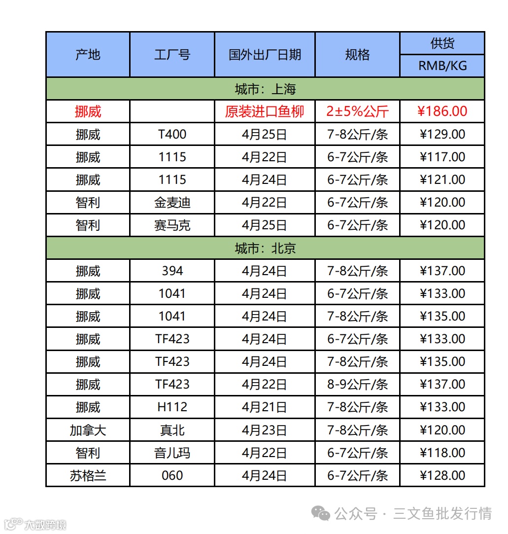 4月29日三文鱼批发行情(上海|北京) 三文鱼批发行情