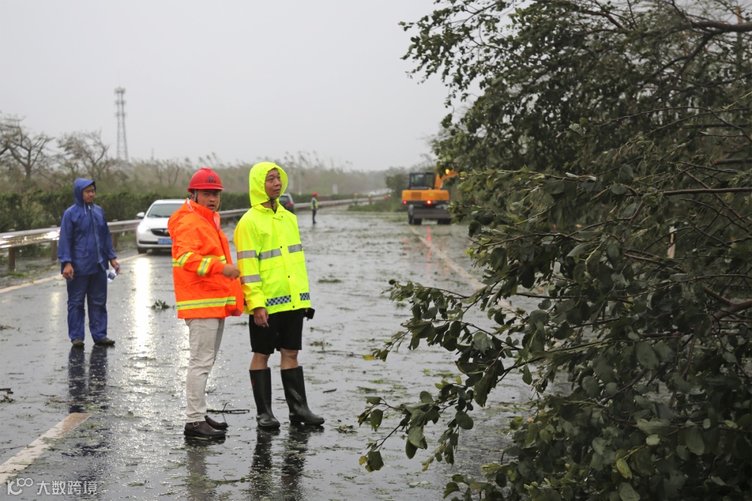 图|台风登陆后,公司工程管理部吴鹏部长(左二)巡视沿线受灾及抢险情况,指挥调度抢险队伍,争取更快一步抢通保畅。