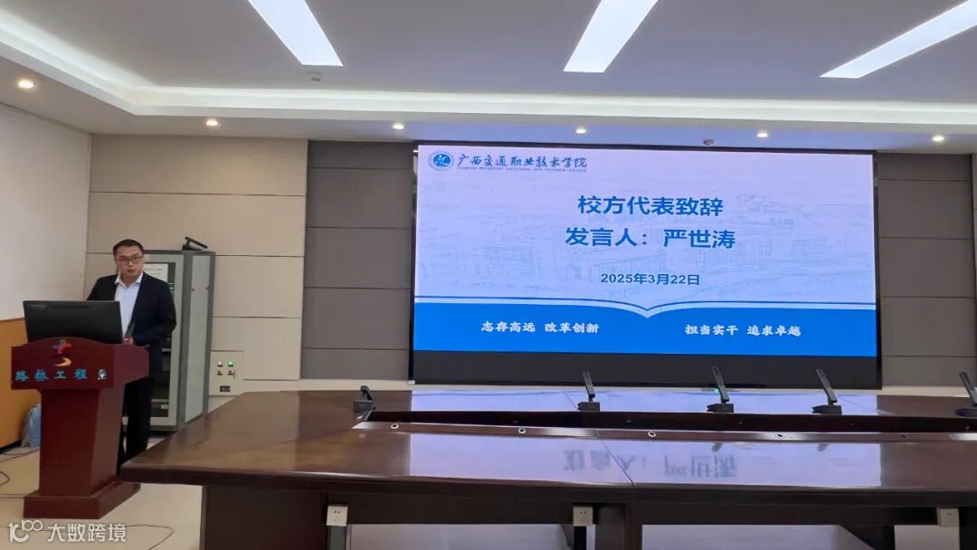 图|广西交职院路桥工程学院副院长严世涛在开班仪式上致辞。
