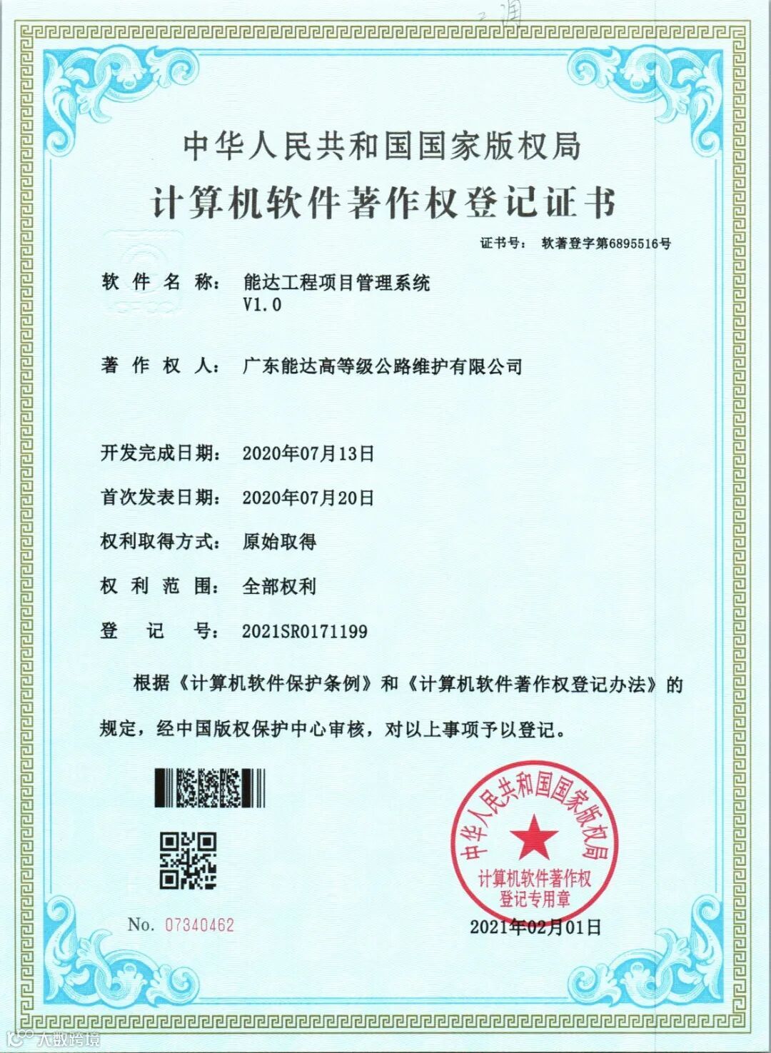 2021年2月1日,公司申报的“能达工程项目管理系统”获得了由国家