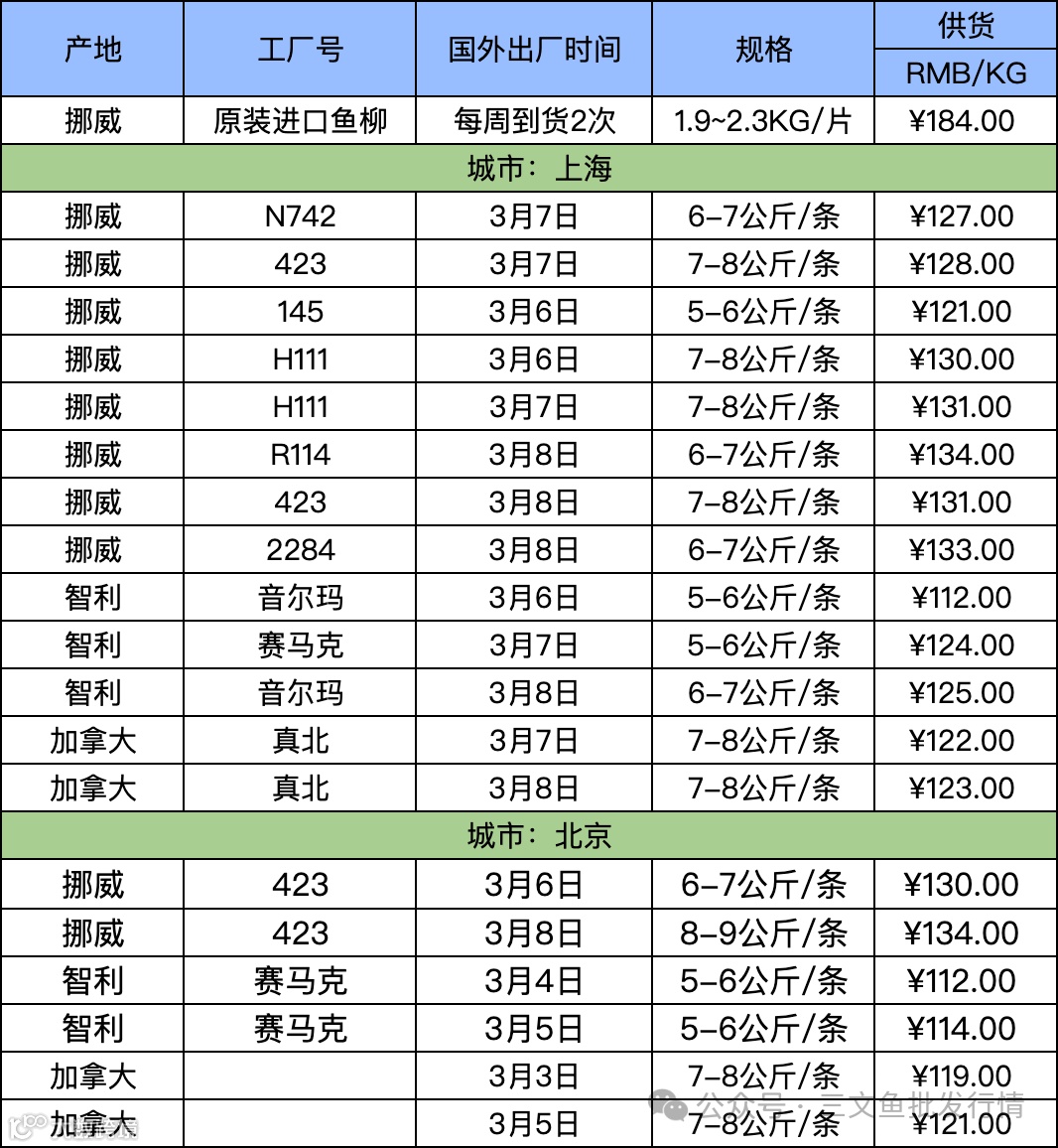 3月12日三文鱼批发行情(上海/北京) 三文鱼批发行情