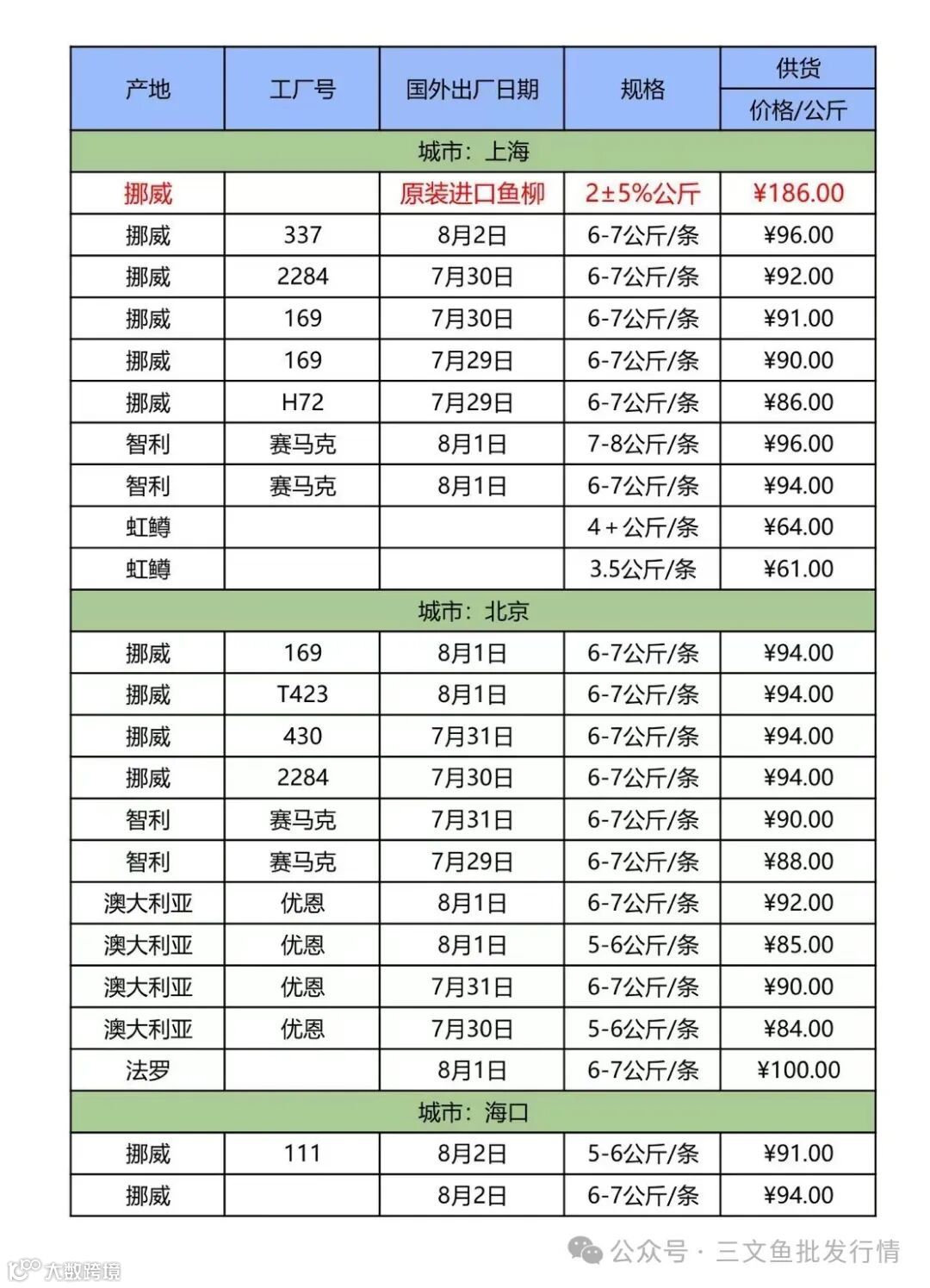6、欢迎关注[三文鱼批发行情],每天更新当天市场价格,及时分享市场各大重要资讯。