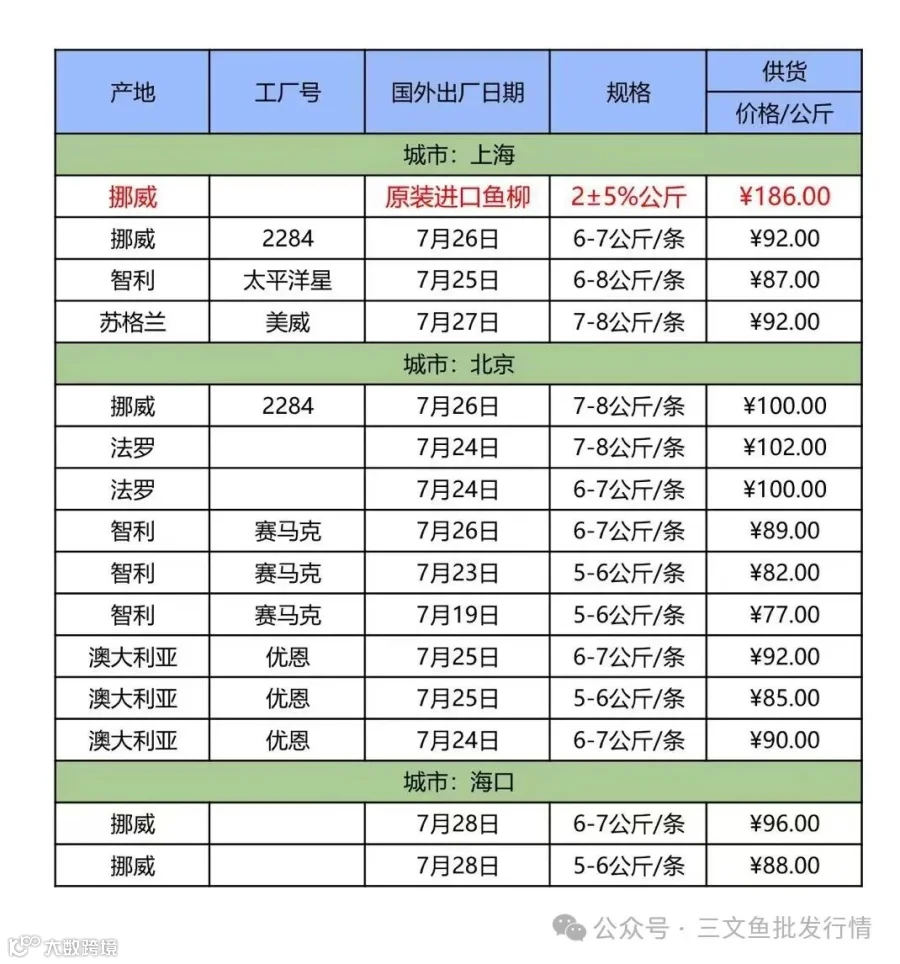 6、欢迎关注[三文鱼批发行情],每天更新当天市场价格,及时分享市场各大重要资讯。
