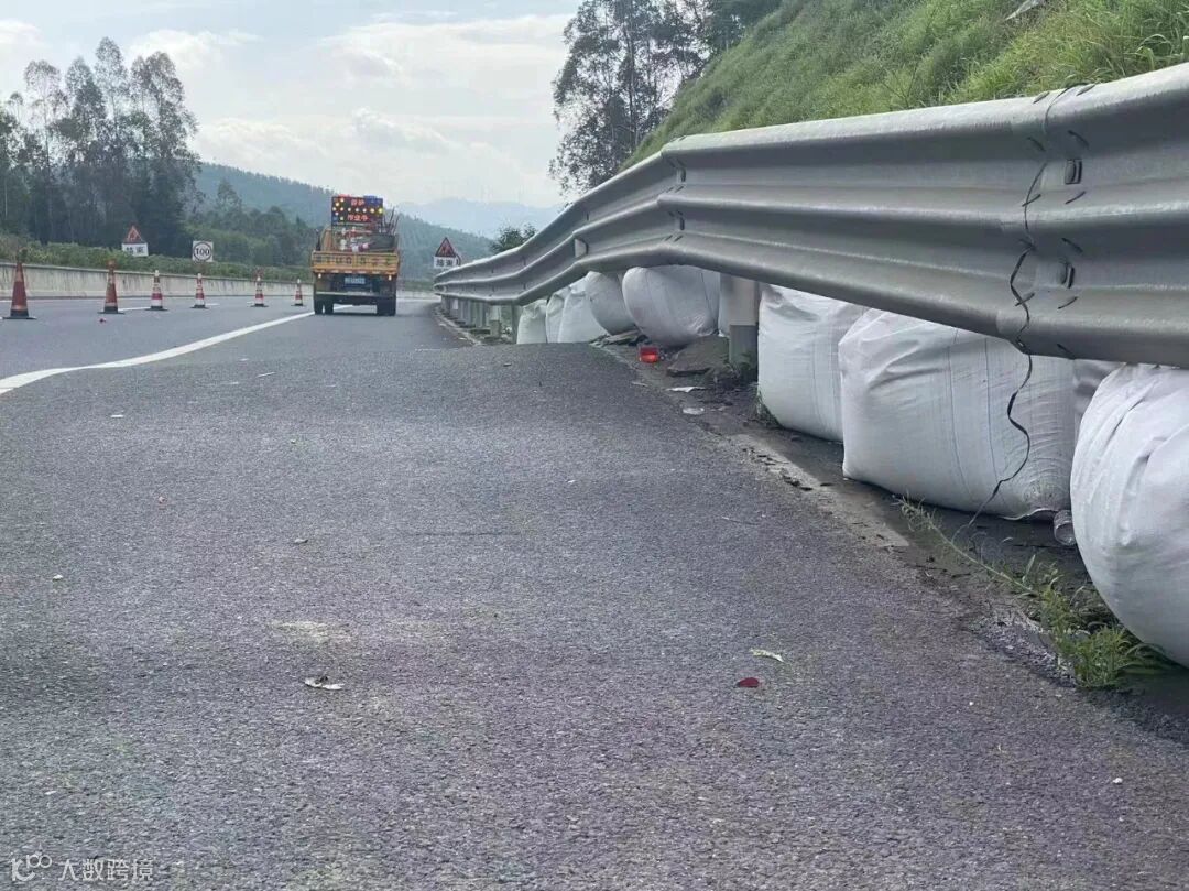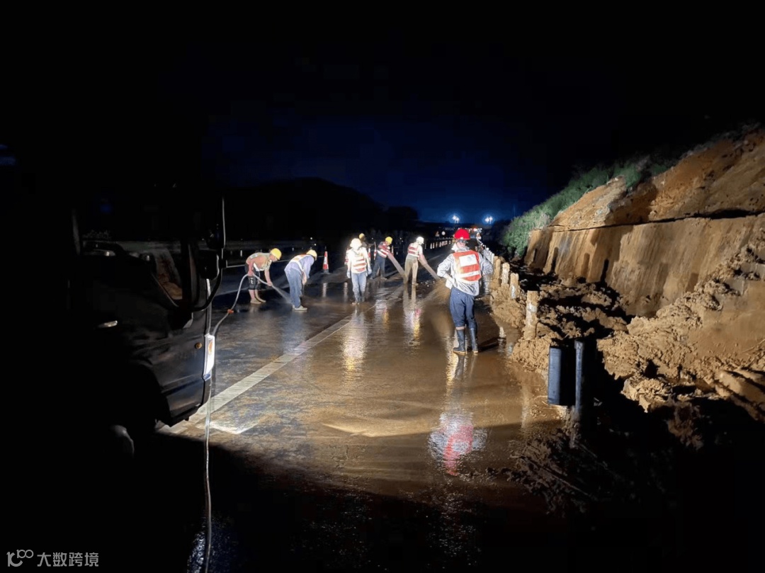 2022年6月1日,广西荔玉高速下线K2437+950、K2435+850、K2431+450边坡受连续暴雨影响,发生水毁塌方;其中K2435+850由于边坡滑塌,树木倾倒一度中断交通。恰逢端午节假日前夕,广西分公司柳州3标养护项目部在接到险情报告后,第一时间迅速组织抢险队伍,同时在上述三处边坡进行抢险排障处置。在接报后仅用30分钟,就抢通了K2431+450中断交通点。随后,经过项目部长达16小时的艰苦奋战,于2022年6月2日凌晨1时许将上述三处边坡水毁导致的安全隐患消除,同时采取相关的防护措施后,恢复交通。