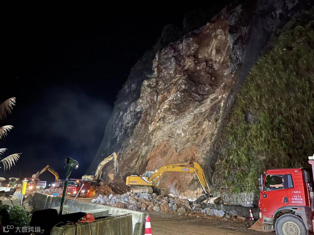 晚上8点40分许,随着一声轰鸣,第一次爆破完成。由于坡体的地质情况复杂、原坡体存在溶洞和裂隙,爆破区域坡面50m处存留危岩体,有进一步滑塌风险。为了尽快消除隐患恢复通车,清连养护项目部管理人员24小时轮流在现场监督施工进度,投入数十台大型清理、运输设备,24小时不间断开展土石方清理作业,并迅速组织第二、第三次爆破。