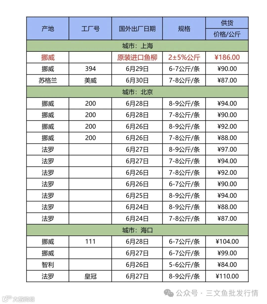 6、欢迎关注[三文鱼批发行情],每天更新当天市场价格,及时分享市场各大重要资讯。
