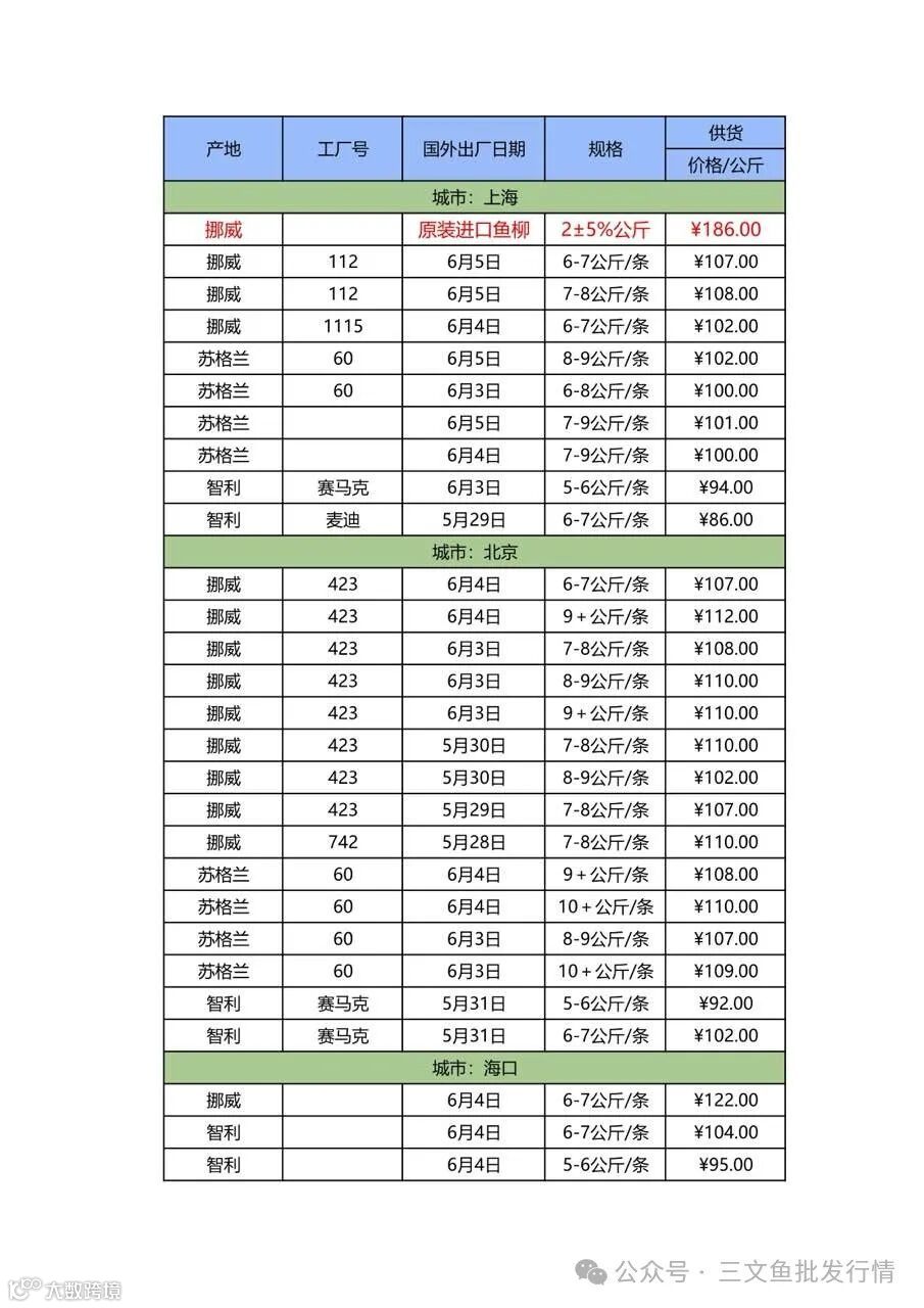6月9日三文鱼批发行情(上海|北京|海口) 三文鱼批发行情