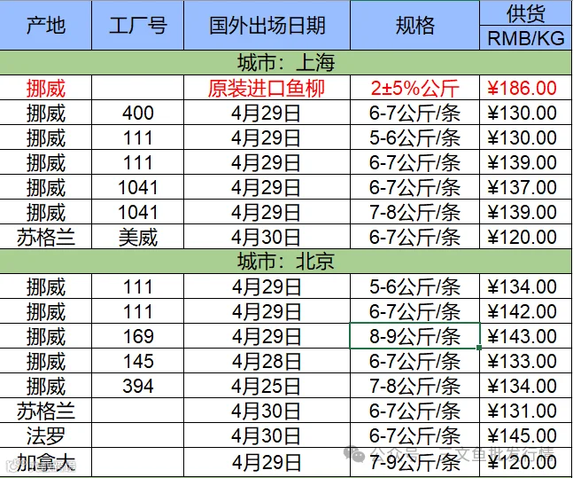 5月4日三文鱼批发行情(上海|北京) 三文鱼批发行情