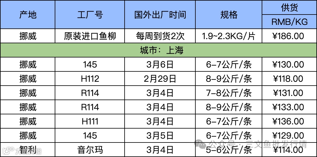 3月9日三文鱼批发行情(上海)