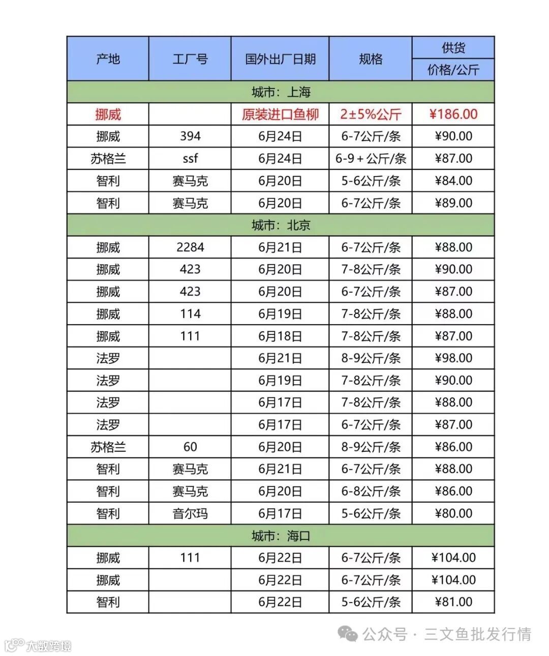 6、欢迎关注[三文鱼批发行情],每天更新当天市场价格,及时分享市场各大重要资讯。
