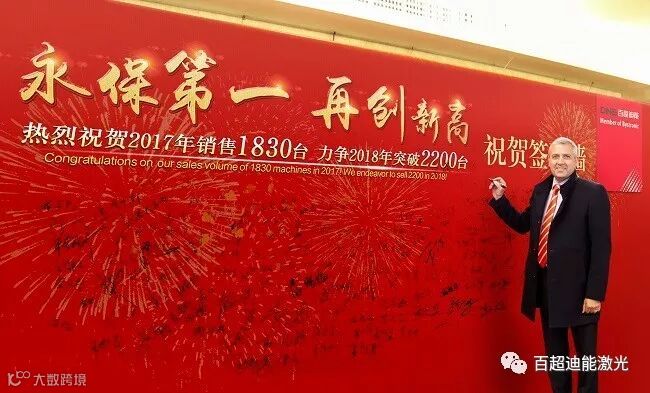 2017年百超迪能激光销售达1830台,年销售额达15亿,完成向客户交付设备达1500多台,年度运营纳税超过1.5亿元。