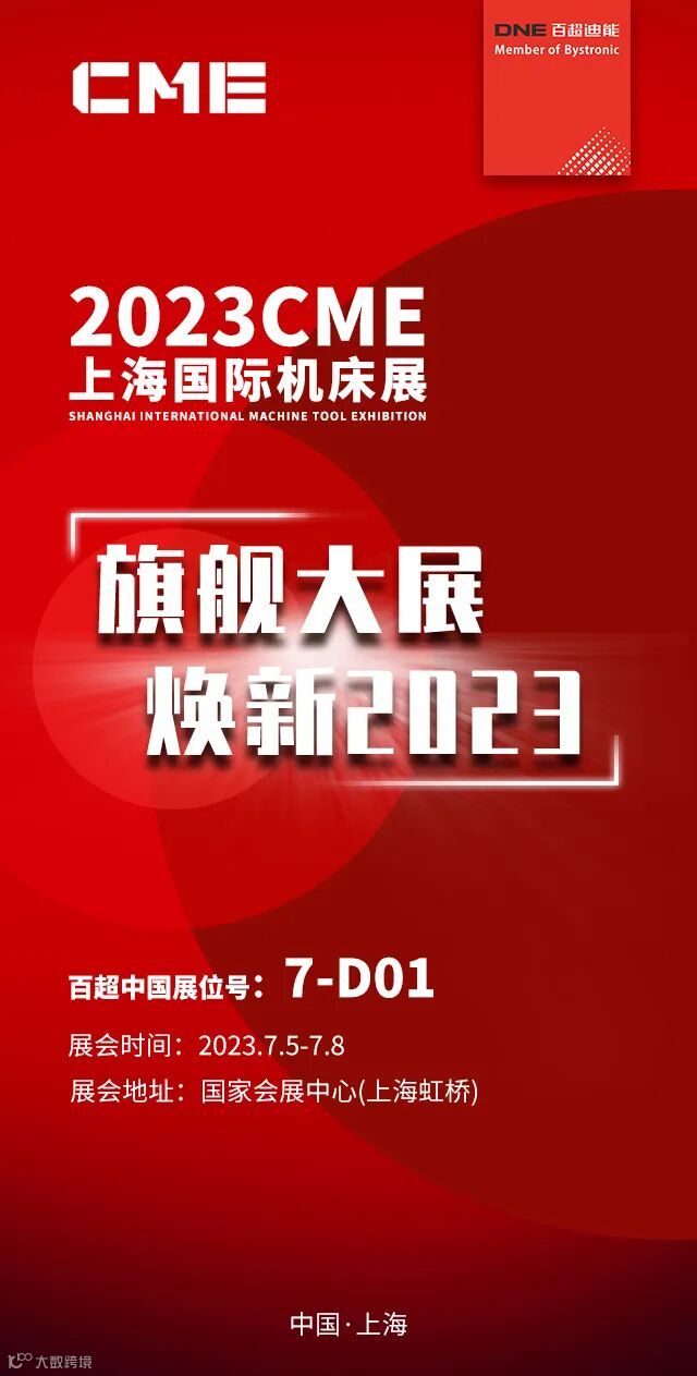 7月5日,2023 CME上海国际机床展在国家会展中心(上海虹桥)盛大开展,百超中国受邀参展。本届展会以“旗舰大展,焕新2023”为主题,展区包含:金属成形、新能源装备、金属切削、磨削工量具、智能工业、机床附件等六大领域同台竞技。百超中国携多款产品亮相,为观众展示更加高效、智能的金属加工装备及完整解决方案,我们在此真诚的邀请您莅临展会参观指导,恭候您的到来。
