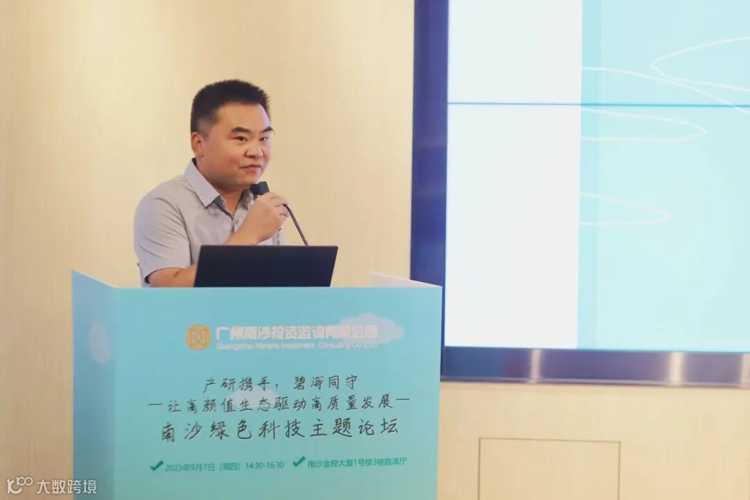 活动开场,南沙科金控股集团副总经理、南沙投资咨询公司总经理黄皞先生为本场论坛致辞。黄总提出,“双碳”目标是我国中长期转型发展战略。社会各界需要勠力同心,为“双碳”减排降碳行动按下快进键。本场主题论坛旨在搭建商协会、研究所和企业等深入交流、共商合作的对话平台,携手各界,通过不断创新和发展绿色科技,实现经济、社会和环境的和谐发展,共同迈向绿色、美好的未来。
