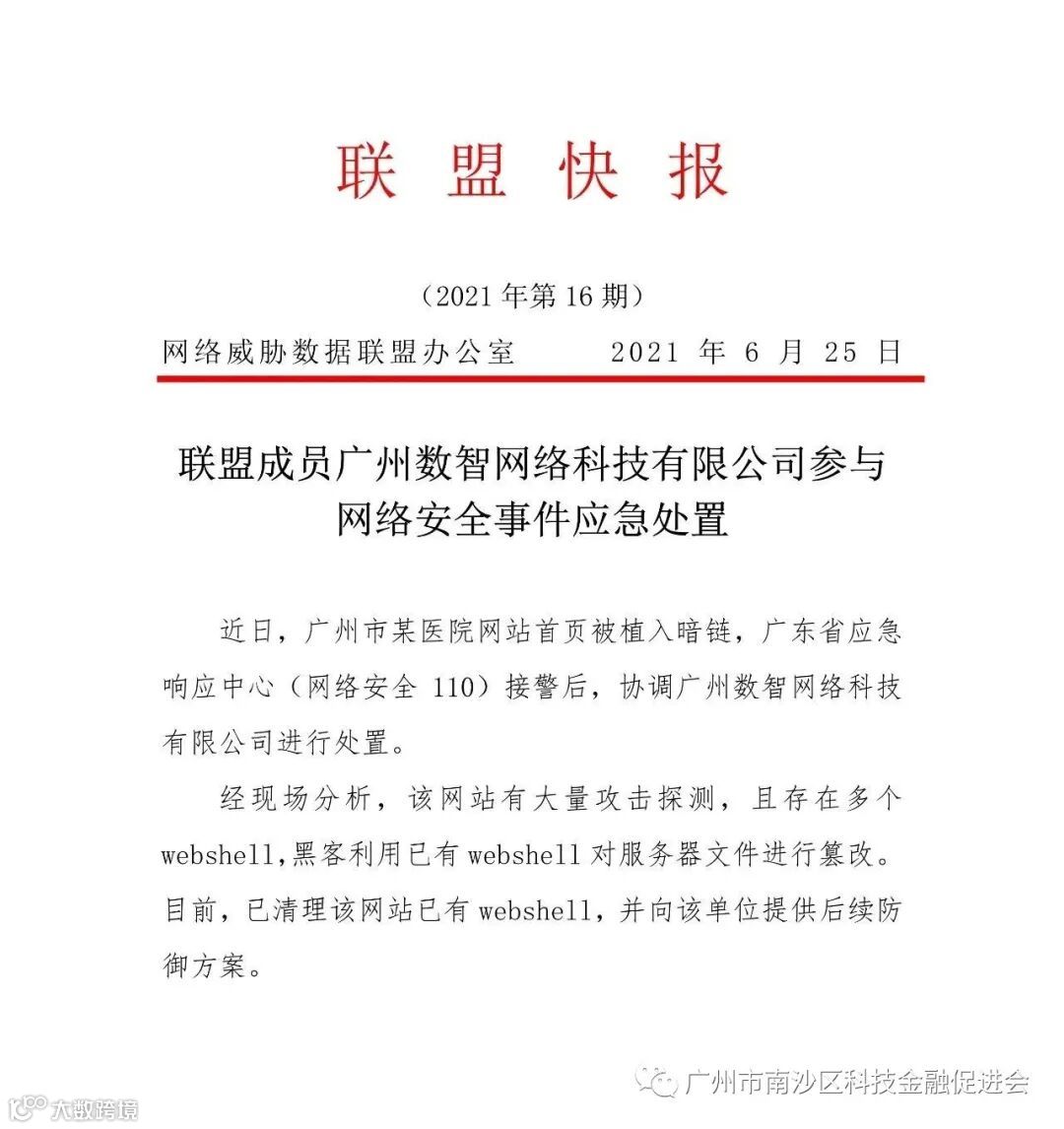 此次攻击事件的处置,是数智科技作为广东省网络安全110的省级技术支撑单位和联盟核心成员义不容辞的责任。