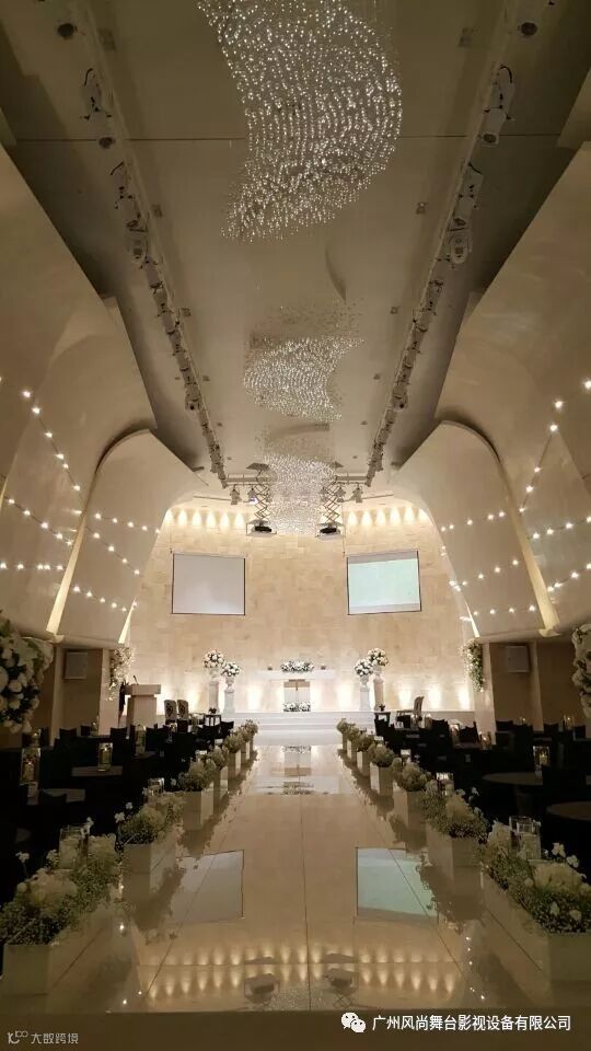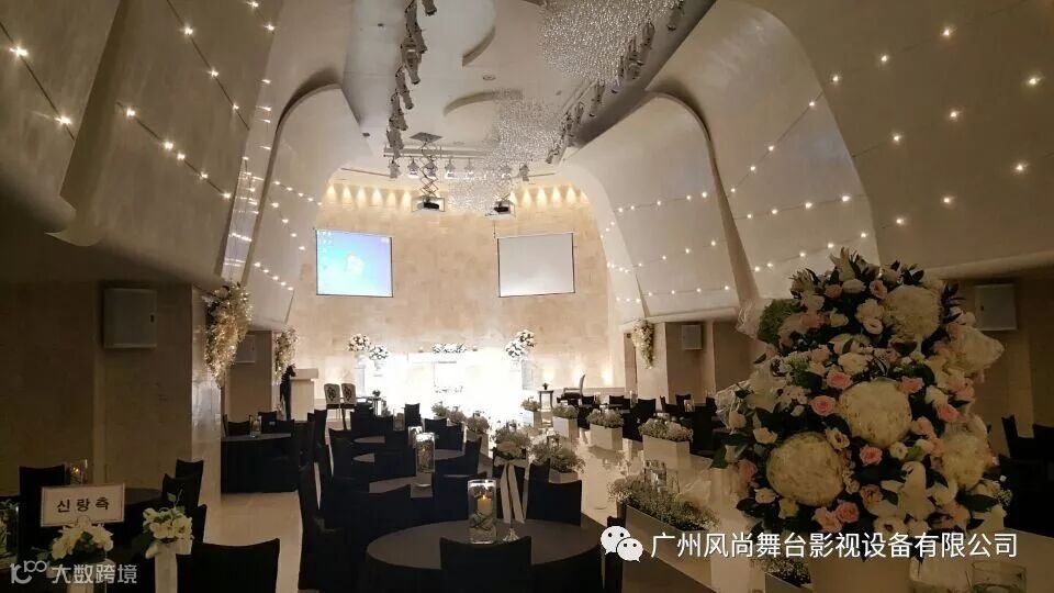 首先,为大家介绍的是韩国的婚礼项目,婚礼在教堂举行,客户采用了白色机箱外壳的成像灯,它非常适合这种环境,与整个教堂融为一体。高显指,高亮度,光效好。3200k暖白色温让婚礼现场呈现出温馨,浪漫,欢乐的婚礼氛围。