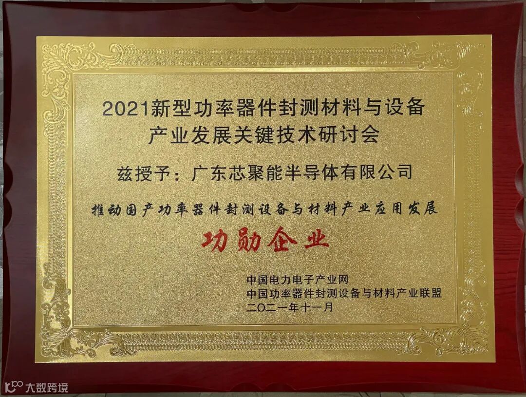 2021年11月19日,广东芯聚能半导体有限公司(以下简称“芯聚能半导体”)参与新型功率器件封测材料与设备产业发展关键技术研讨会。会中,主办方为芯聚能半导体、通富微电,联合汽车电子,宏微科技等六家优秀企业颁发推动国产功率器件封测设备与材料产业应用发展功勋企业奖。