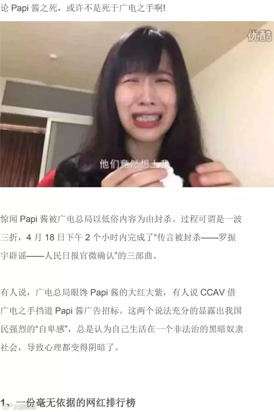 导读:论Papi酱之死,或许不是死于广电之手啊!