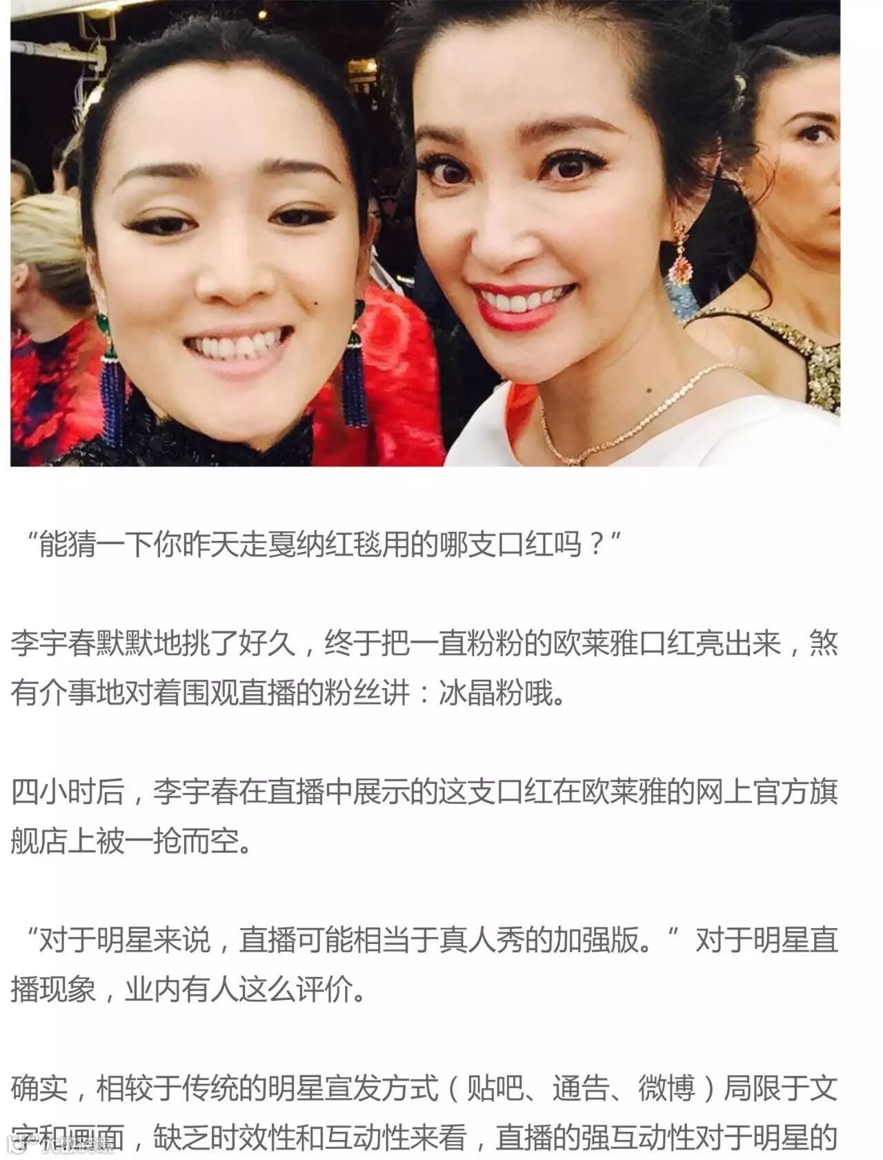 导读:“能猜一下你昨天走戛纳红毯用的哪支口红吗?”李宇春默默地挑了好久,终于把一直粉粉的欧莱雅口红亮出来……