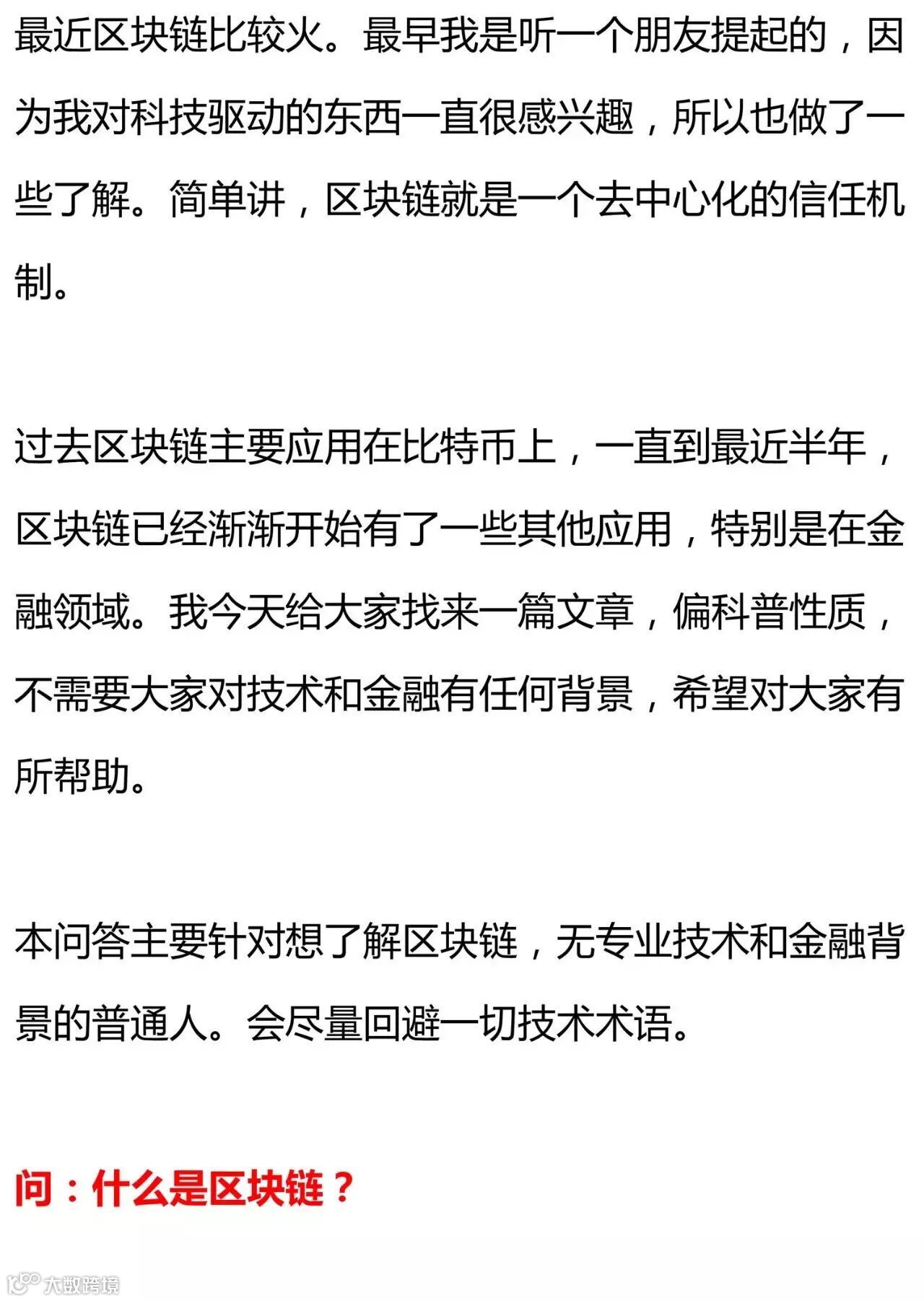 导读:一篇主要针对想了解区块链,无专业技术和金融背景的普通人。