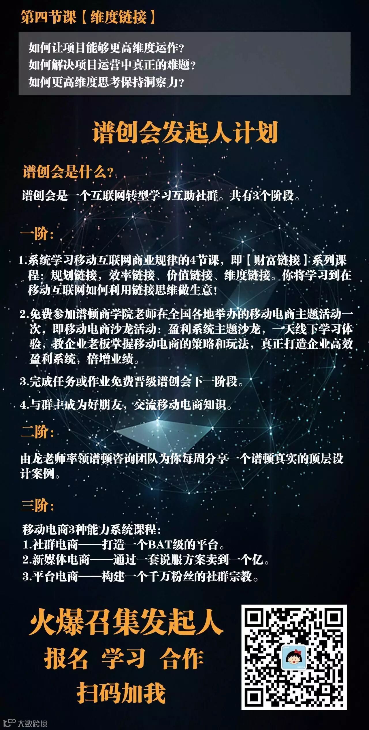 会做电商运营的人很多,但先把规划做好的没几个!电商规划自媒体,由谱顿先生及其移动电商咨询团队创建。这里拥有市场上稀缺的结合传统企业和移动电商的系列课程,是企业转型的不二之选,赶紧来报名吧!