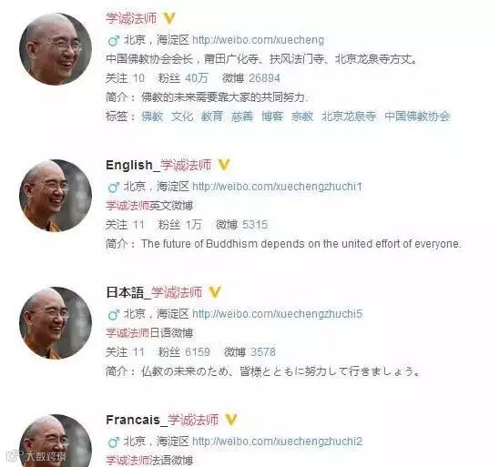 龙泉寺方丈学诚法师,2006年开通博客,2009年起用中文、英文、法文等十种语言在互联网上弘扬佛法,被誉为最会利用互联网的法师。