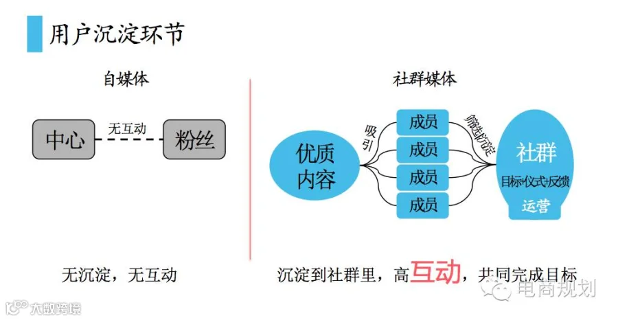 相对于自媒体来说,社群媒体在内容的生产和传播上都采取了一种更为持续和有效的方式,然而社群媒体区别于自媒体最本质的差别不在于此,而是用户沉淀。这才是社群媒体的核心所在。