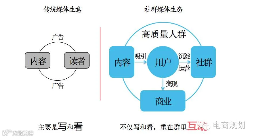 在自媒体中,内容是一切的核心,它是自媒体的目的所在,也是价值所依,自媒体需要靠内容来变现。所以说,自媒体由于没有社群的概念,自然不会去关心用户的沉淀。