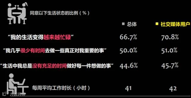 使用社交媒体的主力军是都市80/90后群体,他们生活节奏快,生活压力大,生活的共同关键词是“忙碌”、“焦虑”。