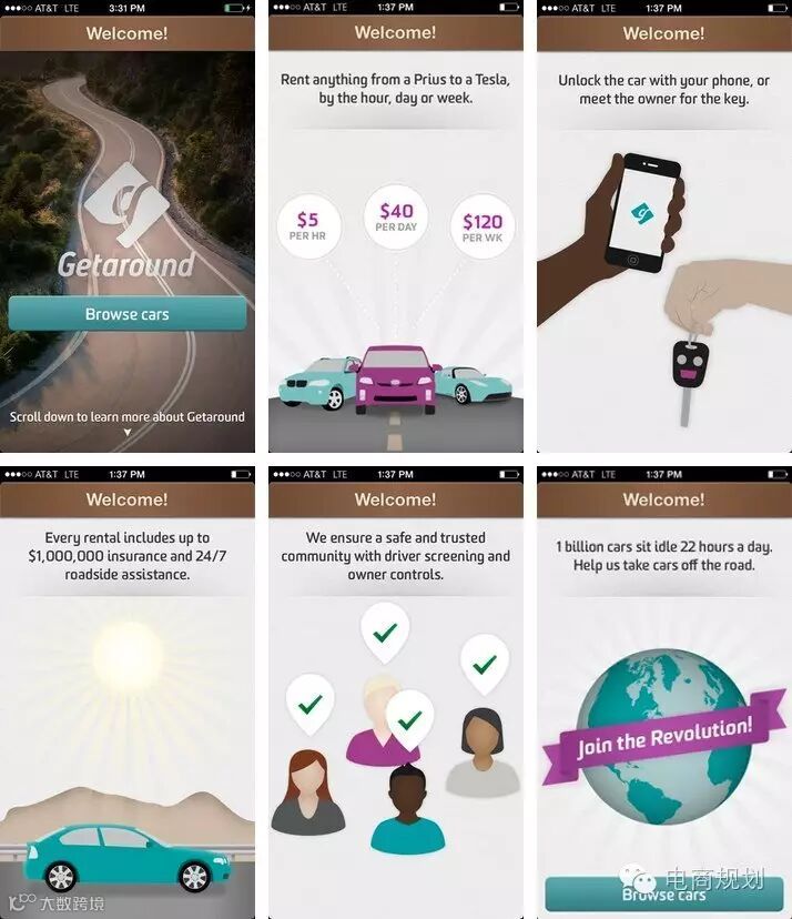 给你的App获取一个长期使用的忠实用户是一件比做出产品本身更难的事情。但是有几件事情可以让用户自然轻松地被引导上。比如说Getaround的概念其实并不简单——它是一个P2P的汽车租借服务。但是你在第一次下载这个App时,它带你走过几步很简洁、介绍性的界面,讲清楚了故事、并且引导你到了一个很容易开始上手操作的地步。