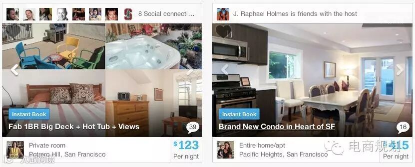 比如说,Airbnb用Facebook的数据来强调出这个房东与你有几个共同好友。这个设计明显是要让用户感觉到他们认识这个房东,或者说双方是同一类人。这样他们就更倾向于租这个房间。