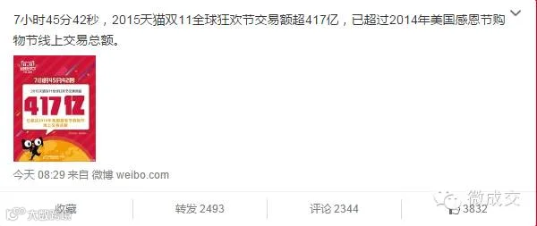 2015天猫双11全球狂欢节交易额超417亿,