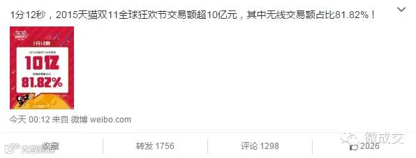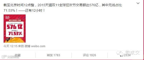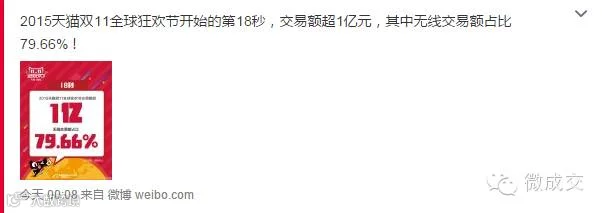 17分58秒,无线交易额超过100亿!