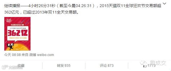 2015天猫双11全球狂欢节交易额超362亿元,