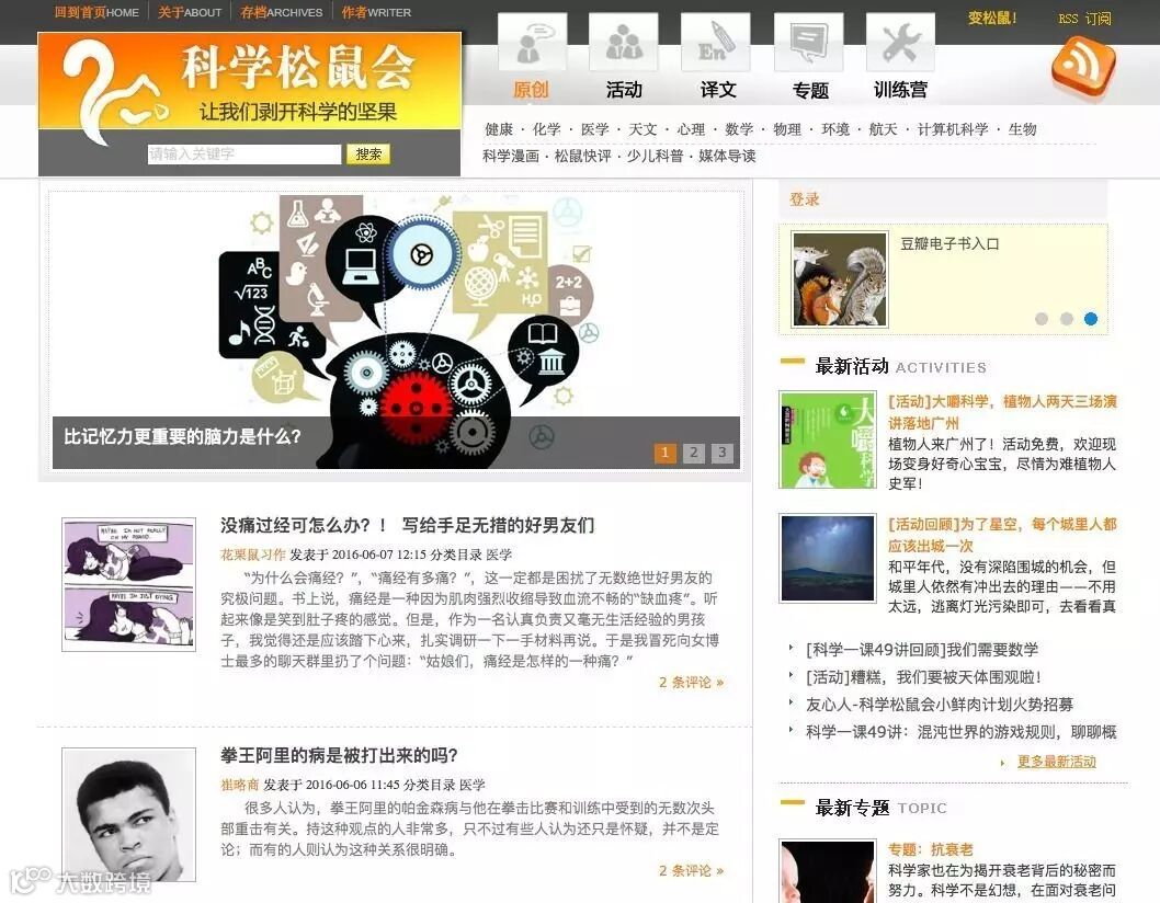 2008 年,“科学松鼠会” 成立,这个民间科普作家的联合博客,更像是个公益组织。