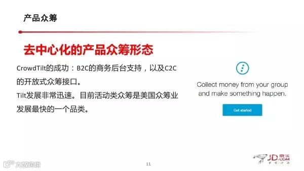 CrowdTilt的成功:B2C的商务后台支持,以及C2C的开放式众筹接口。Tilt发展非常迅速。目前活动类众筹是美国众筹业发展最快的一个品类。