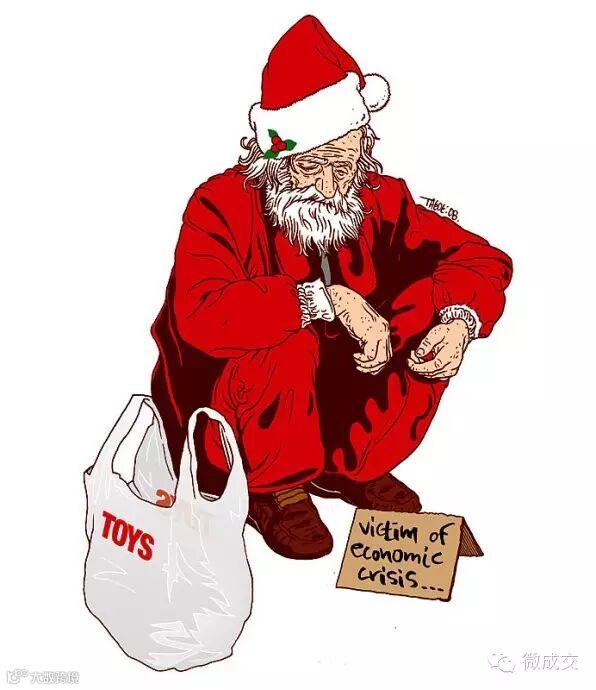 但是好景不长(其实还蛮长了,都几百年了),到了2016年,传统企业受电商冲击太大,到处出现【倒闭潮】【低价竞争】,(插图宁可累死自己也要饿死对手)圣诞老人的代理商、零售店成批倒闭,产品大量囤积,资金链断裂,圣诞老人为了维持业务,甚至还贷款了,已经苦苦撑了几年了,圣诞老人的脸上已经看不到那慈祥的笑颜,更多的是岁月留下的沧桑和惆怅。