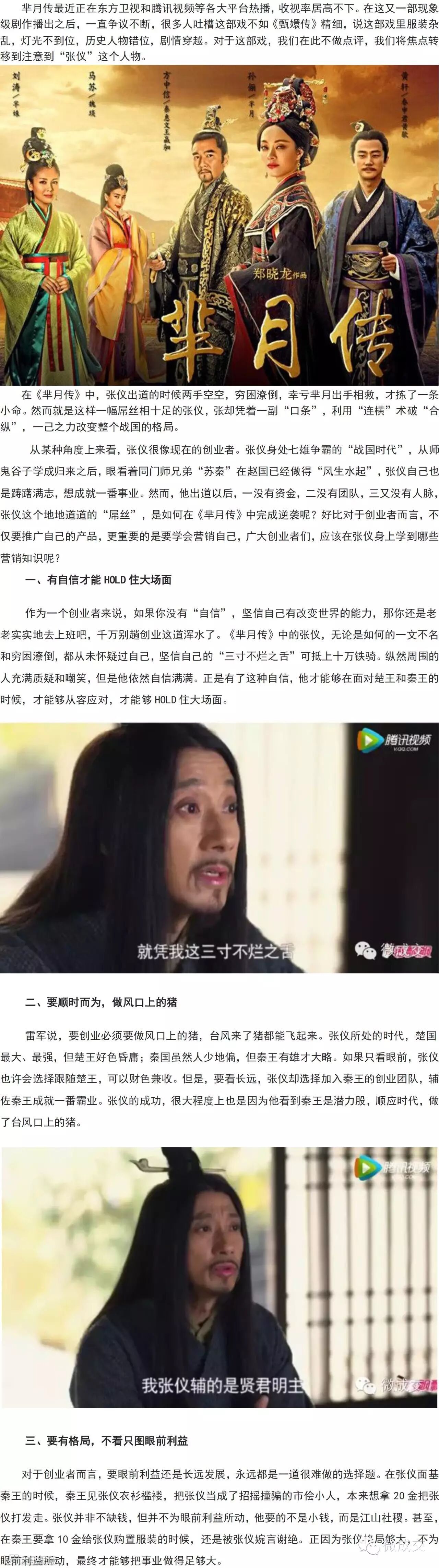 创业者们为什么要向《芈月传》里的张仪看齐?
