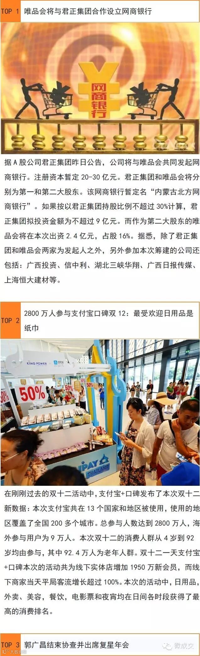 12.14 谱顿日报||唯品会将与君正集团合作设立网商银行