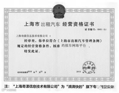 昨天,上海市交通委正式宣布向滴滴快的专车平台颁发网络约租车平台经营资格许可。这是国内第一张专车平台的资质许可,滴滴快的也成为第一家获得网络约租车平台资质的公司。滴滴快的称将尽快给符合条件的车辆和司机颁发资质,并统一购买营运性的交强险和第三方承运人责任险,承运人责任险和乘客意外伤害险每车能提供最多 600 万元的保额。另外滴滴快的也将对司机设置准入条件以及培训制度。