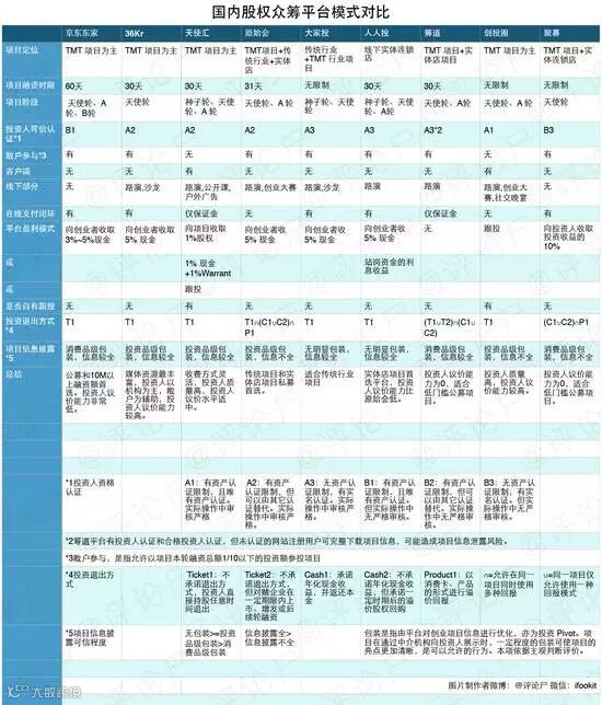 但是前两天看到6月份还有财经记者写稿的时候引用那张表里的内容,本着帮大家做Homework的态度选了几个我比较知道内幕或有投资人身份的平台做了这张表,顺便给打算做股权众筹的创业者、想要参与股权众筹的投资人和散户做下科普和解释,总之先上表: