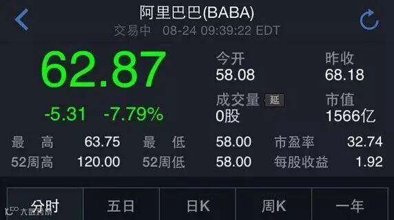 受全球股灾影响中概股大跌:百度大跌20% 阿里跌15%
