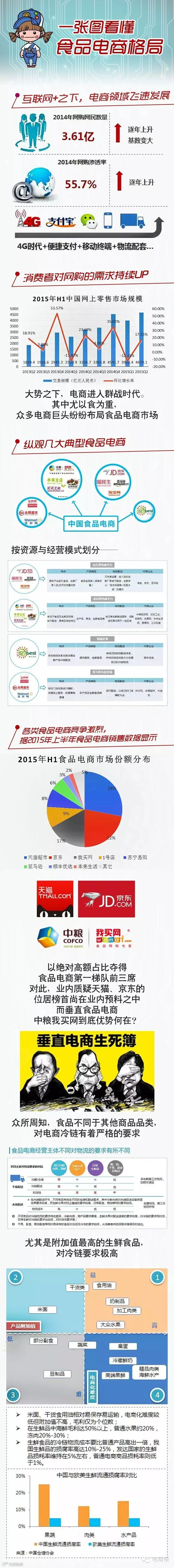 近日,由速途研究院发布的《2015食品电商研究报告》出炉,该报告对我国食品电商市场规模、发展前景、食品网购消费者行为做出了专业的数据分析。数据显示,电商抗衡之下,食品电商中粮我买网以17%的食品市场份额紧随天猫、京东其后,成功跻身我国食品电商领域的第一阶梯,再次全面重塑食品电商格局。