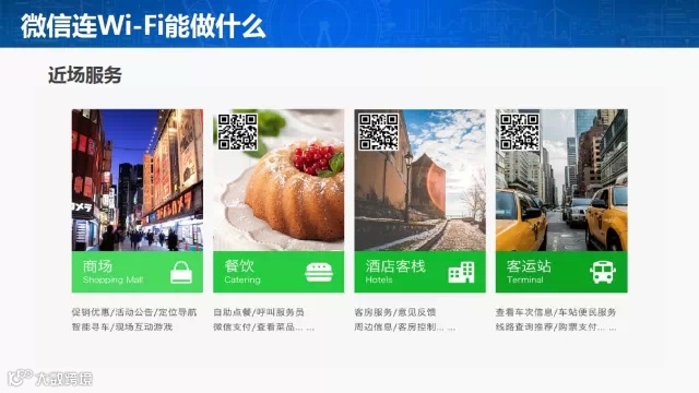 2、以前,Wi-Fi只是个免费的服务,如今“微信连Wi-Fi”不仅免费,还是个“功能性服务转换程序”,它为商家提供了一个营销的快捷新入口。