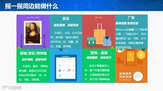 3、“摇一摇·周边”通过在现实场景中对用户提供精准的定位,帮助线下商业及服务得以近距离连接用户,并为其提供个性化营销、互动及信息推荐等能力。